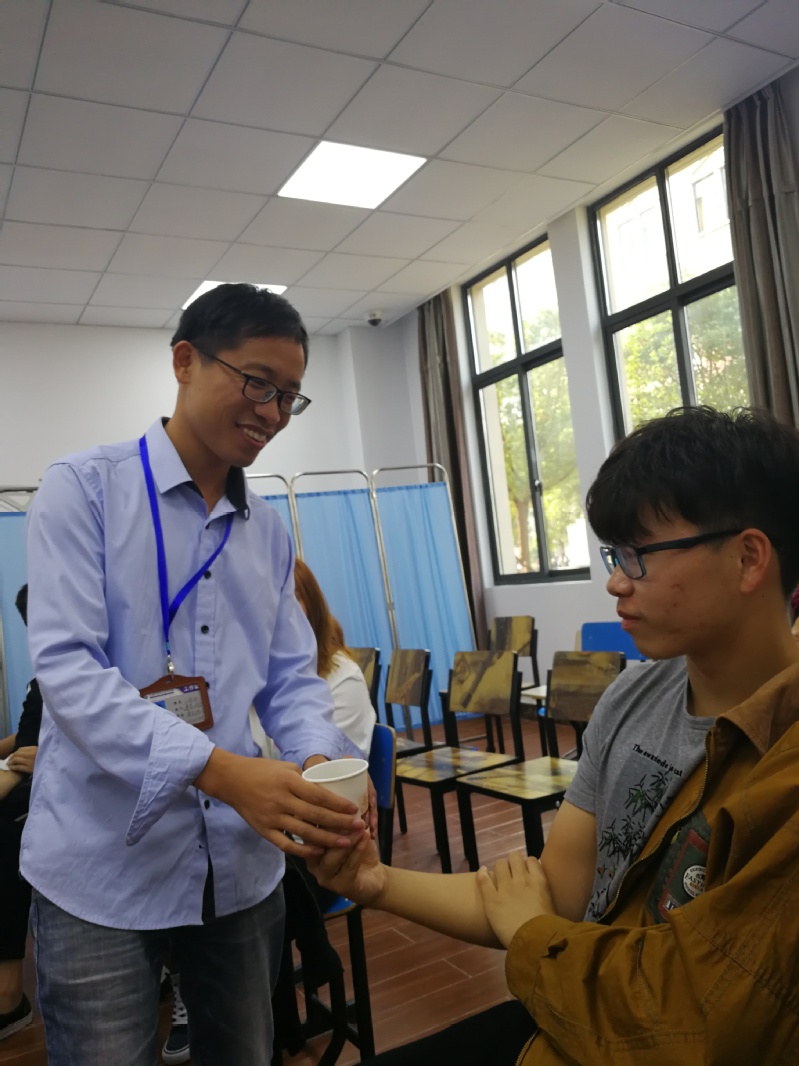 辅导员老师们十分关心现场同学的身体情况,时刻关注献血同学的恢复情况,询问他们:“感觉怎么样?有没有什么眩晕的感觉?”让现场的情绪更加暖意融融。