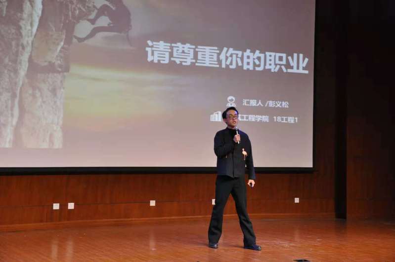 建筑工程学院派出了两名预赛中的佼佼者,他们在舞台上尽情的表现自己,激情洋溢的表达自己的职业观、认知与感悟,用自身的经历来深刻阐释着他们对职业观的理解。