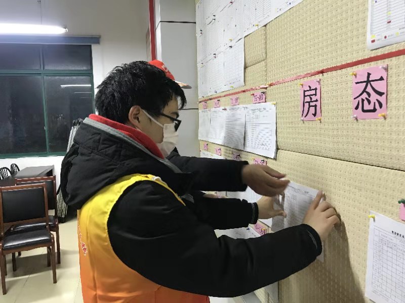 18工程2班宋泽昊同学主动申请志愿加入社区防疫工作中,在这场抗疫战争中一起守护居民健康。他负责的工作主要登记回沪人员和小区居民的信息,提醒居民尽量呆在家中,注意自我防护。