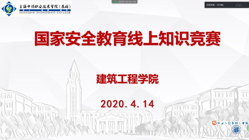 为广泛普及国家安全知识,提升国家安全意识,引导全体师生深入贯彻落实总体国家安全观,从自身做起,形成自觉维护国家安全的主人翁意识,防范和化解各类领域风险隐患!2020年4月14日下午16:00建筑工程学院举办了国家安全知识竞赛,经过激烈角逐,竞赛圆满落幕。