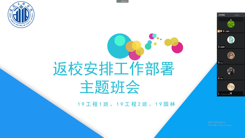 此次线上主题班会的召开为我院学生对返校复学前应该做好哪些准备有了更加清晰的认识,有助于进一步增强同学们的安全防控意识,提高同学们的疫情防控能力,为后期平安返校复学工作开展奠定良好的基础。在全国上下砥砺前行,抗击疫情的日子里,困境逐渐远去,我们也重启了返校的步伐。“万事俱备迎开学”,各项开学工作都已准备就绪,我们期待的校园生活即将开始,请同学们做好返校途中个人安全防护,建工学院欢迎学子们安全归来。