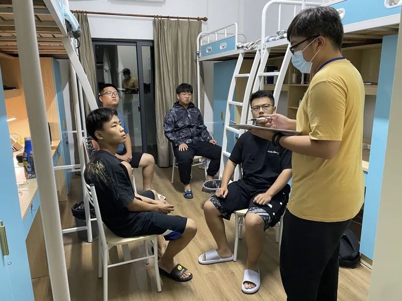导员们了解宿舍生活情况,询问同学们日常生活中遇到的问题并给予了生活建议,同时对寝室卫生进行检查。督促同学们养成良好的生活习惯和学习氛围。