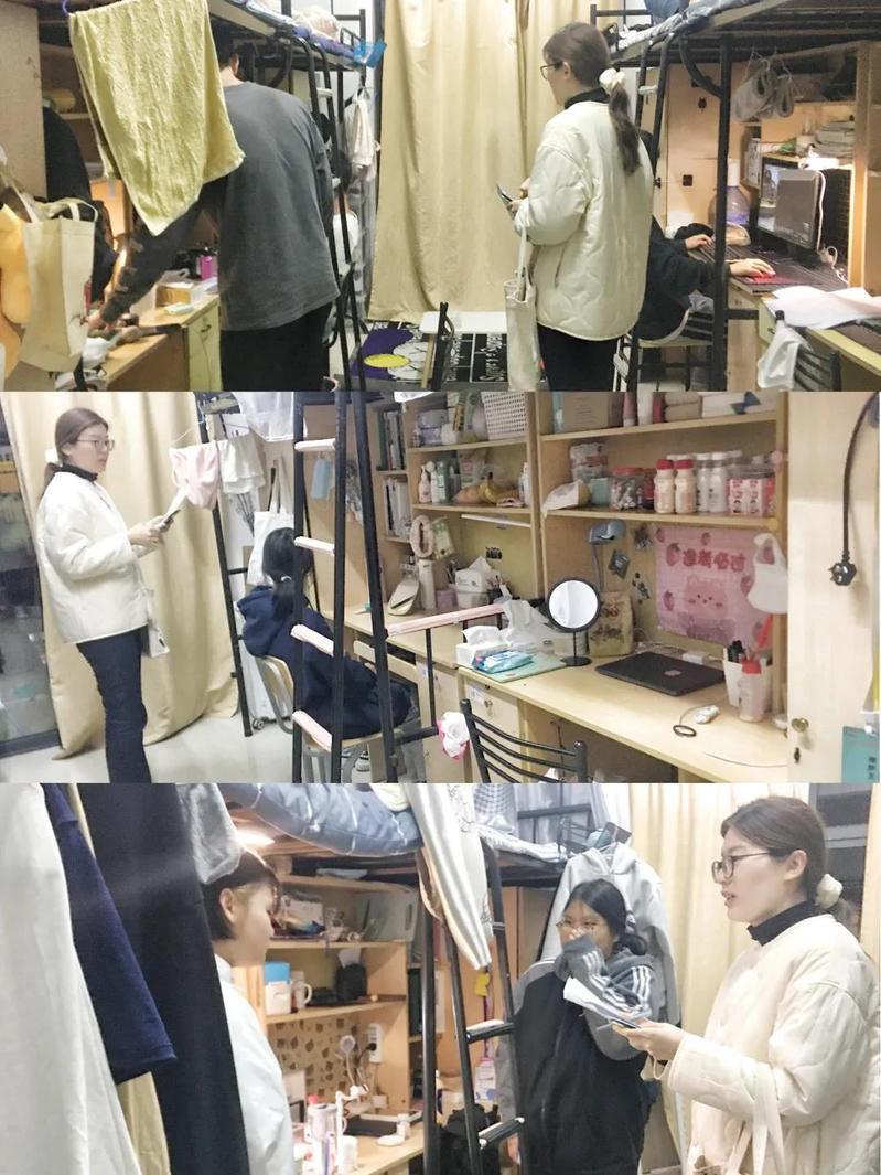 为了更好地深入学生群体,了解学生情况,建筑工程学院副书记岳建梅,辅导员孙靖、王馨苑、程赟深入自己所带班级学生的寝室。
