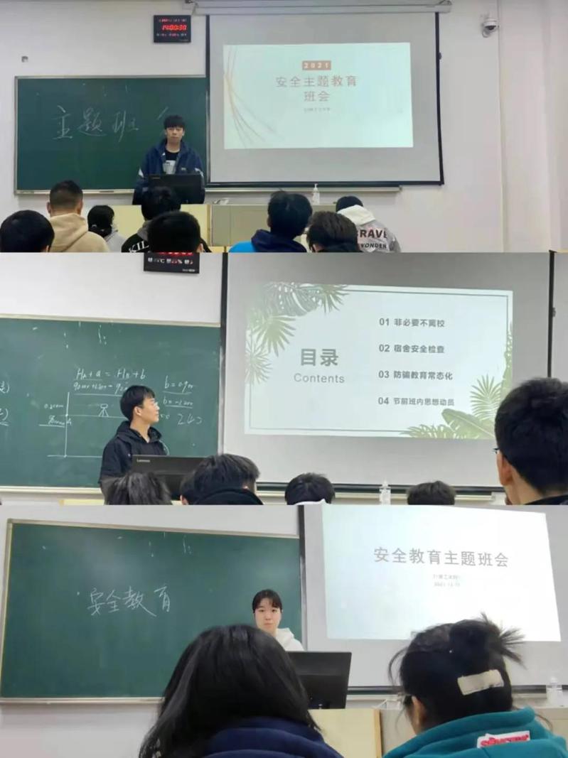 2021年12月中旬,为保证本学期课程的顺利结束,上海中侨职业技术大学建筑工程学院以班级为单位开展常态性安全主题教育活动。会议主要内容如下: