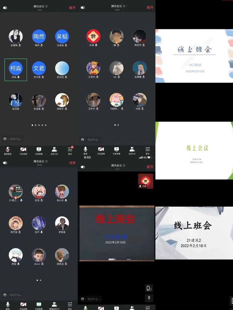 为积极落实学校疫情防控和返校复学工作,保证学生顺利返校。2022年2月18、19日,建筑工程学院以班级为单位,针对2021-2022学年第二学期学生返校工作相继召开线上主题班会,班会由各辅导员主持召开。