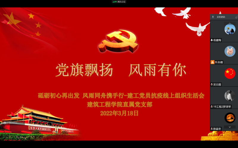 砥砺初心再出发,风雨同舟携手行。面对严峻复杂的疫情防控形势,3月18日下午,建筑工程学院直属党支部召开抗疫线上组织生活会。会议由副书记岳建梅主持,教师党员及学生党员在线参加了本次会议。