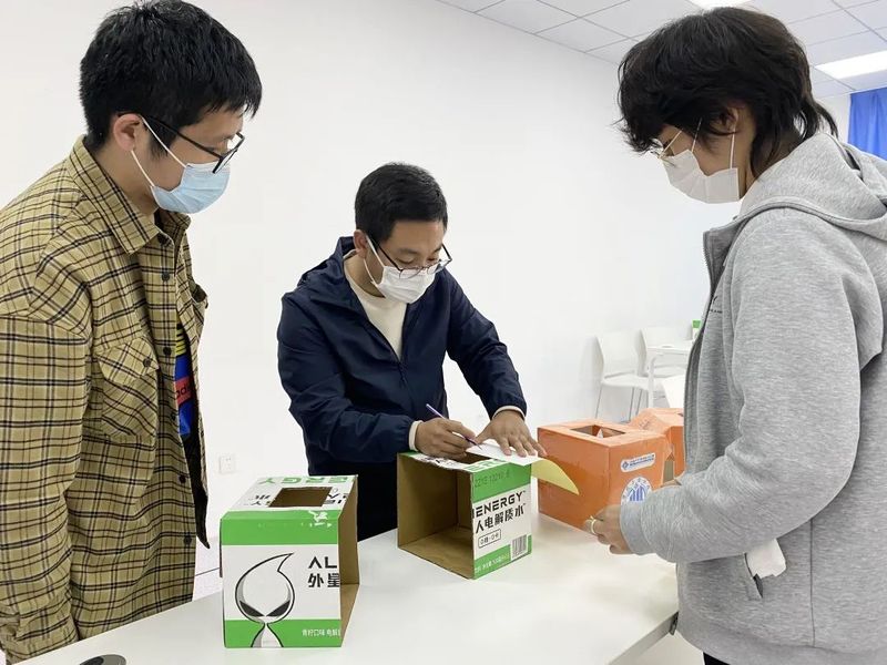 次日核酸检测开始前,任子琦、武汶佳和学生干部魏献法联系核酸检测登记工作人员,将自己的“扫码箱”做了简短介绍。登记工作人员看到“扫码箱”非常的惊喜,急忙放置在几个扫码点尝试使用。在光线强的室外固定好“扫码箱”,师生只要把手机放在指定位置,扫码速度明显加快,不需要再找角度、找距离,切实提升了扫码工作效率。据悉,今日核酸检测时间较昨天缩短时长约1.5小时,在气温逐渐升高等情况下,极大的缩短了全员核酸检测时间,提升了检测效率。“这小发明真是太厉害了!”“大白”和师生们交口称赞,小小“扫码箱”得到防疫人员、志愿者们和参与核酸检测师生的一致好评。