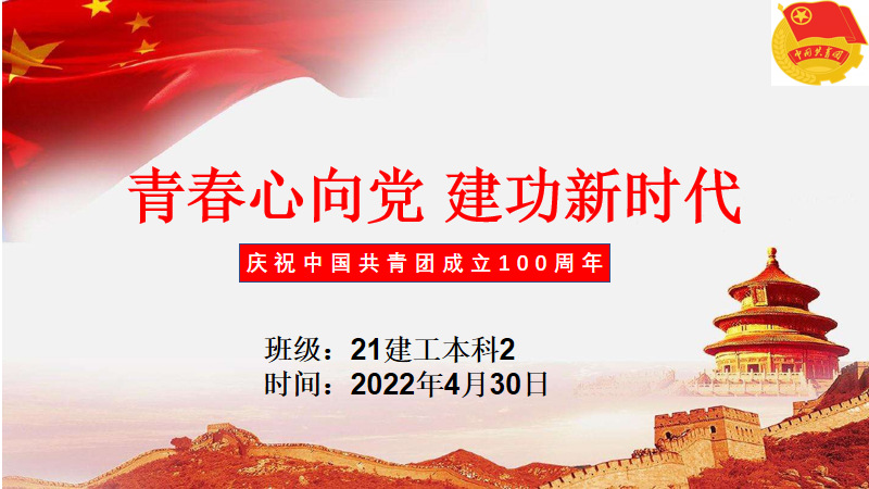 2022年是中国共青团的百年华诞,为纪念百年峥嵘,弘扬伟大的五四精神,并激励当代青年奋勇前行,建筑工程学院21建工本科1班在五四青年节来临之际举行了主题团日线上活动。