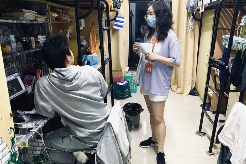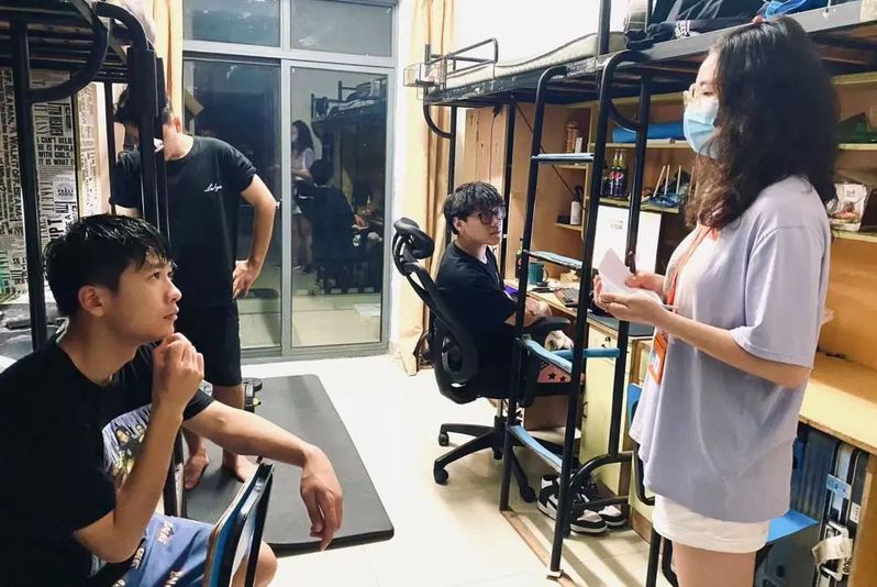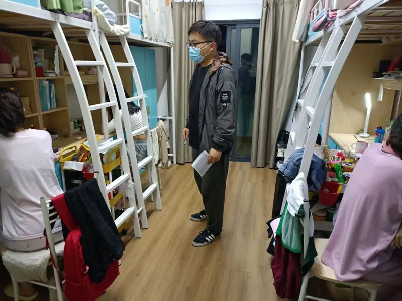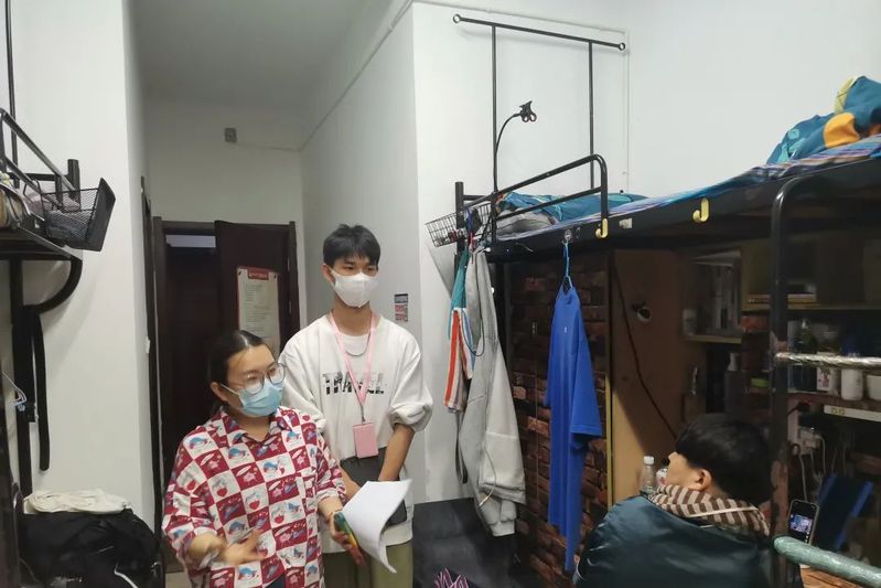 学院将全体在校266名学生按年级、寝室等划分,根据前期掌握的在校名单对各寝室一一走访,开展查寝摸排工作,重点放在学生在校情况、防疫宣传、宿舍安全和心理情况,辅导员利用查寝机会深入和学生们交流谈心,将学校最新的疫情防控政策和要求向同学们宣传解释到位,并提醒同学们禁止购买外卖、禁止挑逗校园内流浪动物,科学佩戴口罩、减少聚集、加强防护,做到防控无死角。