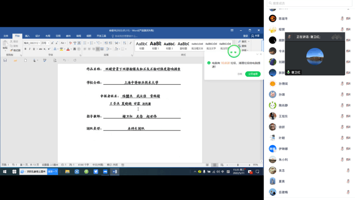 会上,首先由各专业教研室教师介绍学院创新创业大赛指导情况。谢卫红老师分享了自己指导的《双碳背景下双掺粉煤灰和石灰石粉对混凝土强度影响》项目进展情况;陶肖静老师汇报了指导项目《测绘虚拟仿真大赛》的进度以及遇到的困难;吴念老师就自己指导的《为家庭幼儿提供线上与线下教育服务和购物为一体的平台》项目,从项目介绍、目标客户、销售模式、经营模式、未来计划及预测、市场调查、竞争分析等方面展开分享;令永强老师把自己指导的《基于BIM的装配式建筑外墙(光伏+风能建筑外墙一体化)》项目进行分享;孙博闻老师从小组人员介绍、工作叙述、结果展示、工作总结方面介绍了《疫情封控期间高校内一次性快餐盒使用情况调查及绿色改善研究报告》。分享后,与会老师积极进行交流讨论,大家表示干货满满,收获颇丰。随后,副院长昌祥民提出建议和要求,希望全体教师提高站位,科学规划,积极备赛,保质保量推进大赛的项目申报及遴选等工作,不断优化提升参赛项目质量。