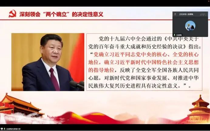 然后,副书记岳建梅带领全体教师进行了政治理论学习,从深刻领会“两个确立”的决定性意义、促进我国社会保障事业高质量发展、可持续发展两个部分进行深入学习。随后,全体教师观看《我为什么当老师》视频,使各位老师更加坚定自己的初心,遵循专业精神、恪守职业道德。副书记岳建梅强调师者匠心,止于至善,为师之道没有终点,为师之爱更无边界。教师是可以带给更多人希望的事业。各位老师要坚持立德树人根本任务,做到心中有生、心中有校、心中有责、心中有戒,不断涵养高尚师德,以德施教、以德育德,做党和人民满意的“四有”好老师。