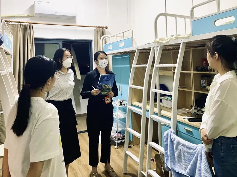 为了更好地深入建筑工程学院学生群体,了解新生在校生活情况,增强安全用电以及卫生意识。加强校园安全管理,强化安全隐患整治,营造良好的宿舍氛围。9月25日傍晚,建筑工程学院副书记岳建梅、辅导员张桐源以及班级助理徐毅、刘奕慧、武汶佳、董浩一同深入新生宿舍进行走访和问询。