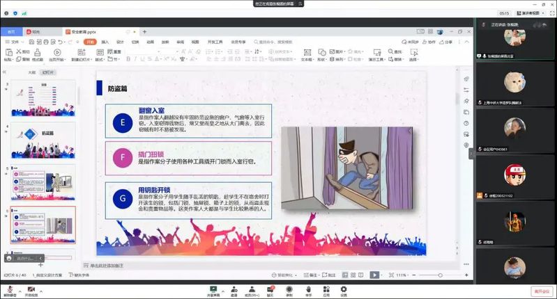 最后,张老师表示同学们才刚入学,对校园及周边环境相对陌生,大部分新生少有集体宿舍生活的经历,生活自理、自立能力相对较弱,自身安全防范意识不强,安全教育显得尤为重要。并对新生强调每位同学都要时刻警惕电信诈骗,开学季是信息泄漏与电信诈骗的高发期,而诈骗成功之后财物往往难以追回,诈骗方式多样、难以辨别,他向同学们详细介绍了多种诈骗方式,提醒大家没有“不劳而获”的事,让大家深刻理解到“安全无小事”,防范刻不容缓。