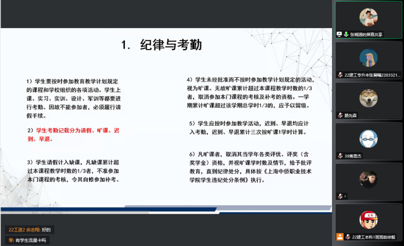 为了帮助2022级新生更好地适应新一阶段的生活,坚定理想信念,增强校园集体生活归属感,合理规划大学生活,在疫情防控常态化背景下,建筑工程学院辅导员张桐源老师于2022年9月27-28日晚连续开展了线上新生入学教育。