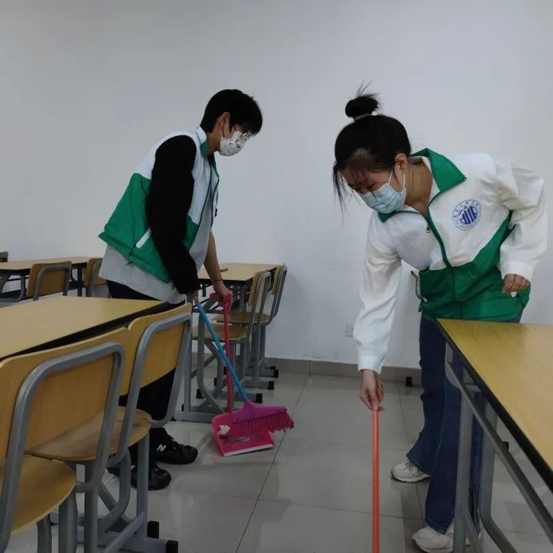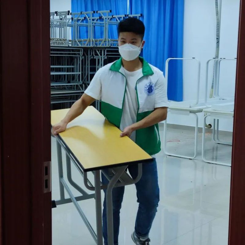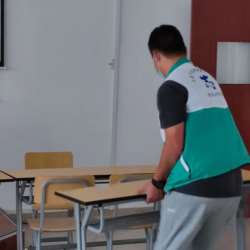 为了以崭新的样貌迎接新学期,开学初期,因人员不足等现实困难,部分教室还来不及彻底清扫,很多桌椅板凳还没有配备到位。建筑工程学院分团委学生会带动志愿者,搬运、调配桌椅,清扫合班教室,让教室恢复了干净整洁,不怕苦不怕累,只为确保同学们能够顺利安心的开课。