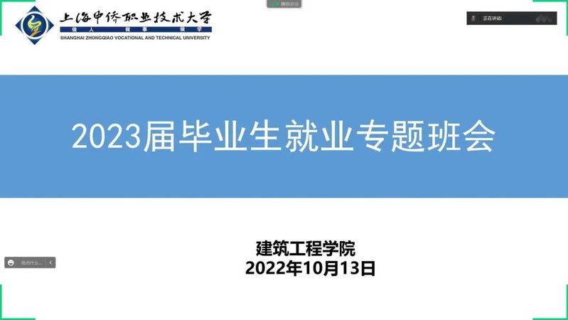 为深入贯彻落实学校就业工作部署要求,全力打赢学院“稳就业促就业”攻坚战,向社会经济发展提供重要的人才支撑,促进毕业生高质量就业。10月13日晚,建筑工程学院2023届毕业生就业专题班会在线上举行。会议由辅导员王馨苑老师主持,2023届全体毕业生参加此次专题班会。