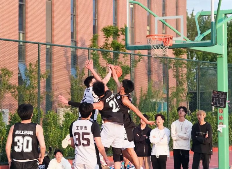 本次对战的是信息工程学院,可以说对手的实力在学校里也是数一数二的存在,但是建筑工程学院的勇士不惧困难,怀着对篮球的热爱,以坚毅的神情、矫健的身姿一次次将篮球投进篮筐,比分你追我赶,十分焦灼,双方队伍打的你来我往,不相上下,随着计时器最后一秒变成零,建工男篮再创佳绩,以41:36又一次拿下比赛。