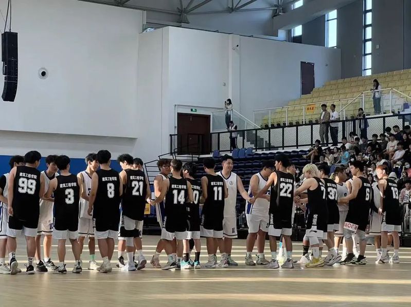 场外的建筑工程学院后援团目不转睛地盯着场上来回飞动的篮球,心率随着篮球的动态而跳动。起此彼伏呐喊声激起了赛场上球员们的热血,球员们都使出浑身解数,把自己的潜能发挥到了极点。