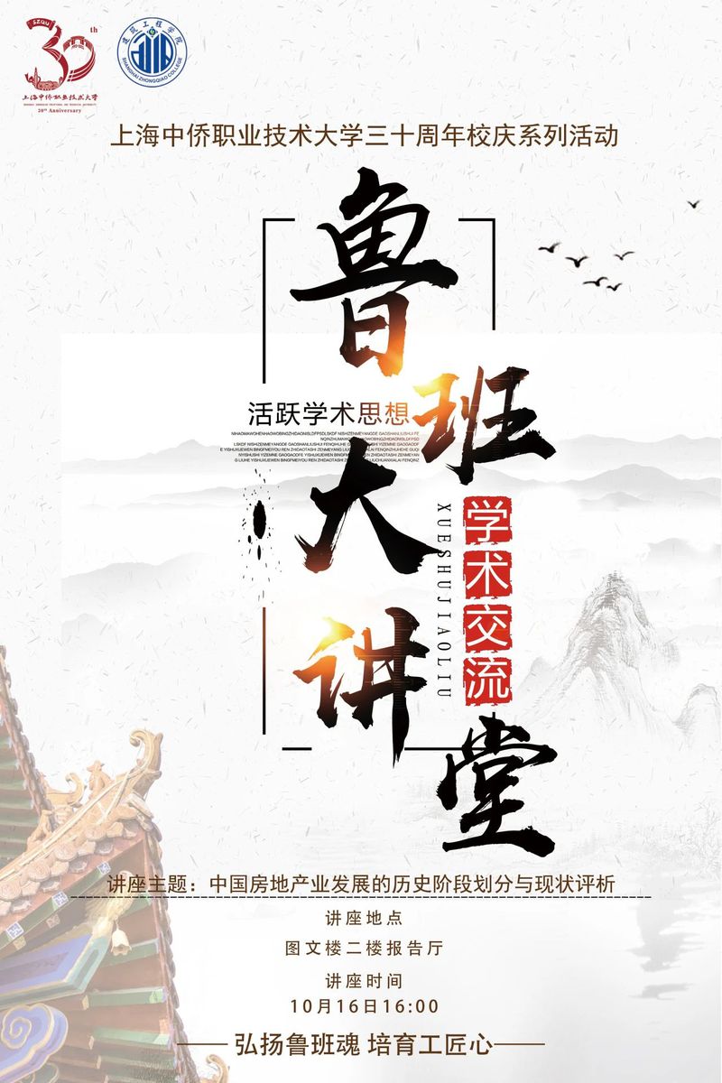 为热烈庆祝上海中侨职业技术大学30周年校庆,营造校庆氛围,提高学生文化素养,加强内涵建设,传承弘扬鲁班文化精髓。建筑工程学院将于10月16日举办30周年校庆系列讲座,特邀中国矿业大学博士,教授,博士生导师陈龙高讲学。