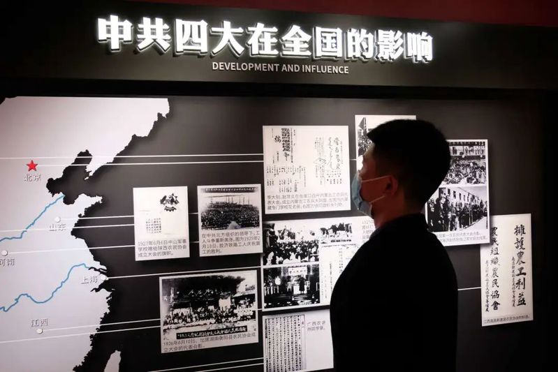 展厅内展示了许多共产党人献身革命的事例,他们坚贞不屈,顽强抗敌,他们是伟大的英雄。蔡和森提到:第四次大会是形成群众党的开始的基础,因此在党的历史上有很大的意义。党的“四大”为新的革命高潮作了理论上、思想上、组织上的准备,从而推动了一九二五年以五卅运动为主要标志的全国反帝革命风暴的到来。总之,中国共产党从几百人发展到后来的千万党员,道路实在艰辛和曲折,但也正说明了共产党人具有极高政治智慧。而正是这些政治智慧,让中国革命在共产党领导下最终取得胜利。