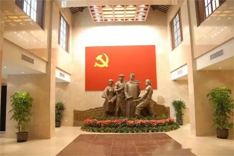 四川北路公园内的中共四大纪念馆,四周绿树成荫、鲜花繁茂。公园内蜿蜒错落的绿化景观,大气开阔的下沉式广场,将繁华商业中心的世俗喧闹层层过滤,使公园深处的四大纪念馆浸染在一片宁静庄严氛围中。步入这座传统石库门元素与现代简约风格巧妙融合的赭红色建筑,如同走进一座红色殿堂。在这里,无论是权威打造的基本陈列,还是精心策划的特展临展,讲述的都是共产党人用真理和鲜血书写的光荣故事。