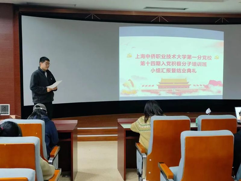 为检验入党积极分子党课集中培训成果,巩固党课学习教育,提高思想政治素质和理论水平。2023年11月14日,上海中侨职业技术大学第一分党校第十四期中级党课结业典礼在6号楼306教室举行。经济与管理学院学生党支部书记邵静、经济与管理学院学生党支部组织委员陶燕、建筑工程学院团委书记张桐源出席本次结业典礼。本次结业典礼由中党第三组组长黄怡菲主持。