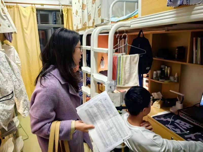 在查寝的过程中,辅导员关心学生们的住宿情况,并强调不要在寝室使用大功率电器,以防寝室出现安全事故,并提醒学生们,最近气温变化大,注意保暖,外出做好防护措施,不要感冒、发烧,注意自己的身体健康。