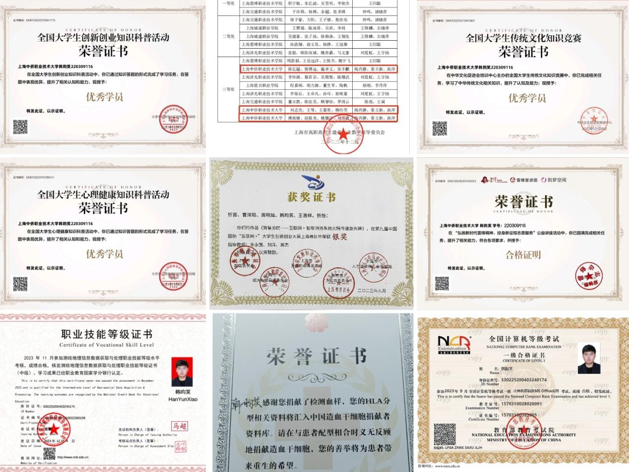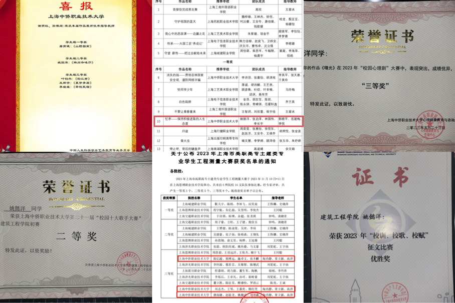 获2023年上海市高职高专土建类专业学生工程测量大赛三等奖;