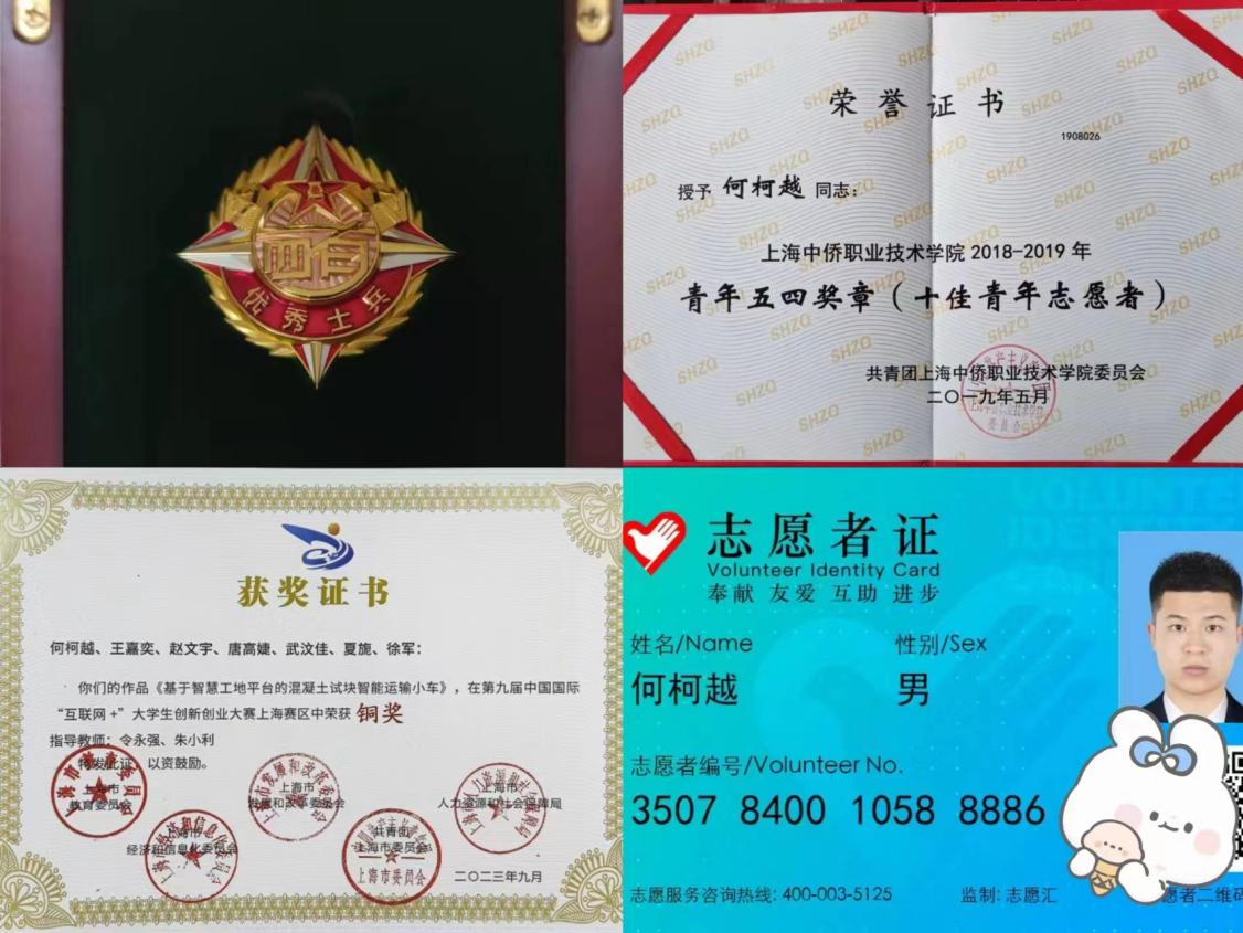 在校期间,何柯越同志积极参与各类志愿者服务活动,包括敬老院关爱行动、疫情防控一线支援、无偿献血公益活动等十余项,用实际行动践行社会主义核心价值观。特别是在疫情防控中,他被授予疫情防控“最美逆行者”的称号,体现了一名预备党员在关键时刻挺身而出、守护人民安全的决心。
