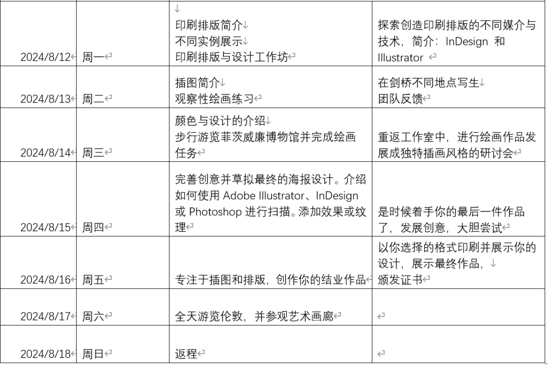 附:行程表(会根据实际情况进行调整)