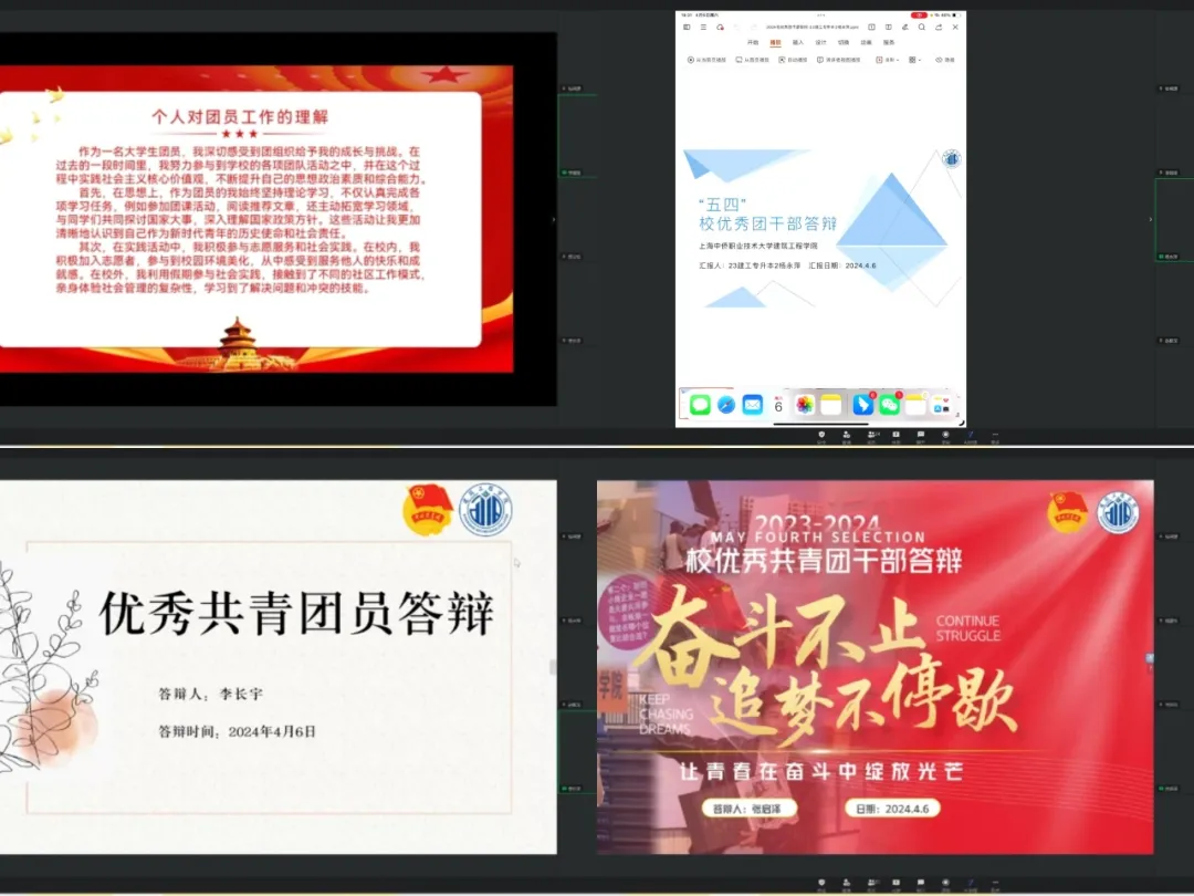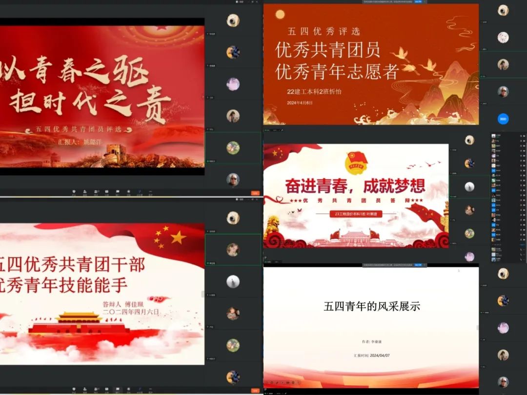 为深入贯彻落实习近平总书记同团中央新一届领导班子集体谈话时的重要讲话精神,充分激发广大团组织和团员团干部在中国式现代化建设中挺膺担当。2024年4月6日,建筑工程学院开展五四优秀团干部、优秀团支部评选线上答辩会。经过自主报名、资格审查,22名建筑工程学院同学参与本次答辩。