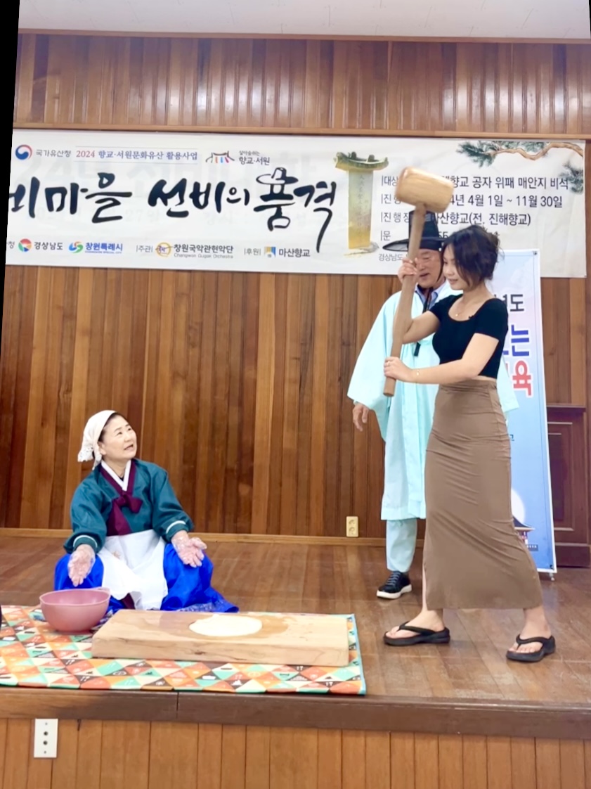 研学团成员们穿上韩服,在专业老师的指导下体验韩国传统伽倻琴与奚琴的弹奏。不仅如此,研学团成员亲身体验打年糕,感受韩国传统文化的魅力!