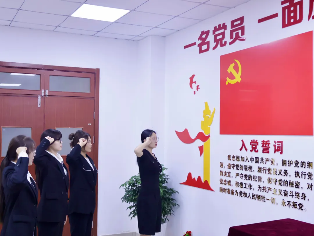 建筑工程学院直属党支部副书记岳建梅带领三名预备党员同志宣读入党誓词。