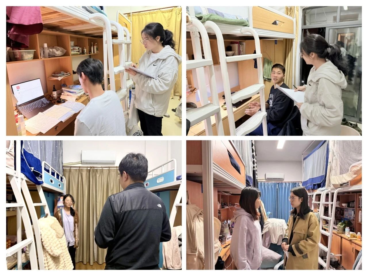 走访过程中,辅导员亲切问候学生生活情况,积极收集住宿时产生的各类问题,并开展寝室安全教育。辅导员提醒学生注意用水用电安全,严禁违禁物品,并提倡所有寝室成员遵守规章制度,共同营造良好学习与生活环境。
