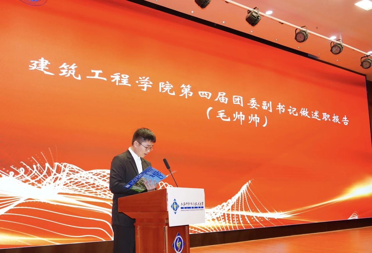 建筑工程学院第四届团委副书记毛帅帅从思想引领,社会实践,开展志愿服务,传承工匠精神四个方面对过去一年的工作进行汇报。并共勉新一届的团委、学生会干部以身作则,严于律己,做好表率,服务同学,力争创造一个塑造清新、阳光的团委、学生会形象。