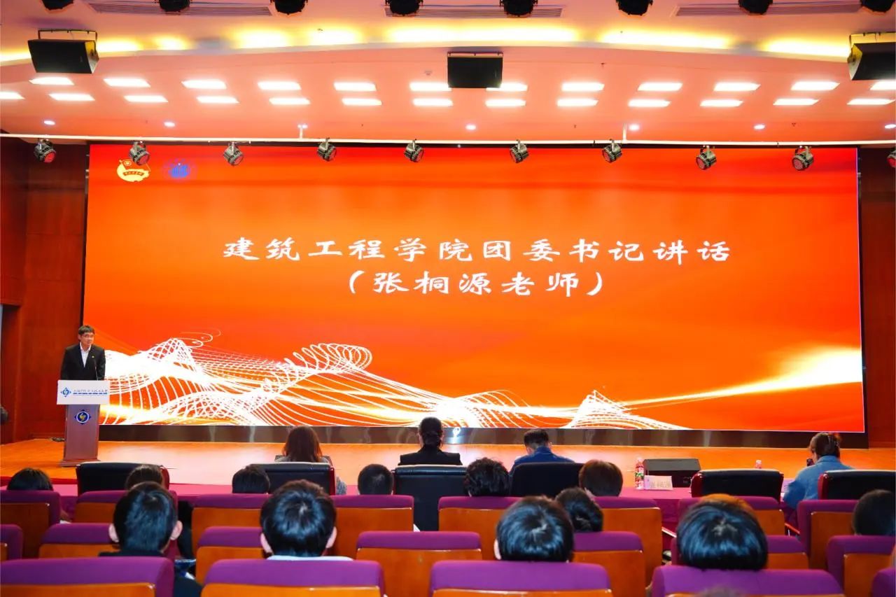 建筑工程学院团委书记张桐源老师对此次换届大会进行讲话。首先对建筑工程学院第四届团委学生会付出过努力的同学表示感谢。其次向即将当选建筑工程学院第五届团委学生会成员的同学表示祝贺。最后告诉同学们要怀着一颗感恩的心,积极为同学做实事并努力奋斗。