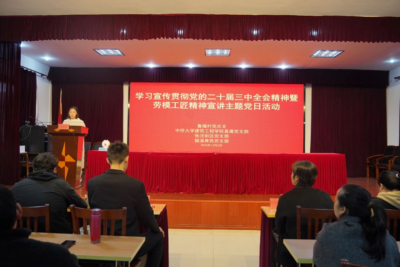 同心结对共成长,融合共建硕果盈。2024年12月6日,鲁堰村党总支、上海中侨职业技术大学建筑工程学院直属党支部、张泾街区党支部、留溪雅苑党支部各党员代表在鲁堰村委会开展学习宣传贯彻党的二十届三中全会精神暨劳模工匠精神宣讲主题党日活动。建筑工程学院精心组建的“工匠精神宣讲团”满怀热忱地走进鲁堰村,宣讲团成员李长宇同学作劳模管仕忠、胡振球的事迹宣讲。