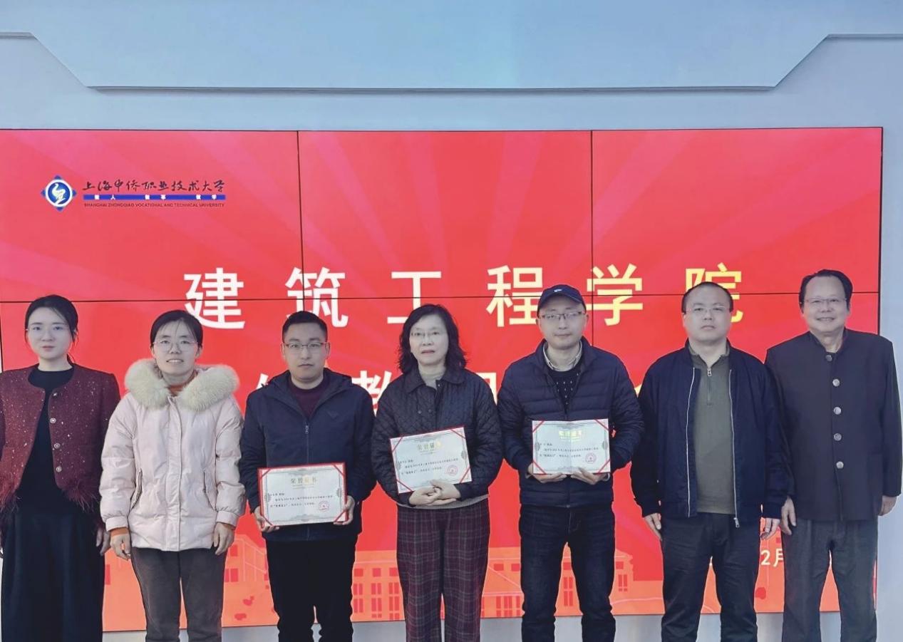 会议最后,学院对2024年度优秀教师进行了表彰。工程造价本科专业主任令永强、建筑工程本科专业主任吴念、建筑工程专业教师谢卫红教授荣获“2024年度优秀教师”称号,学院领导为他们颁发了荣誉证书并合影留念。