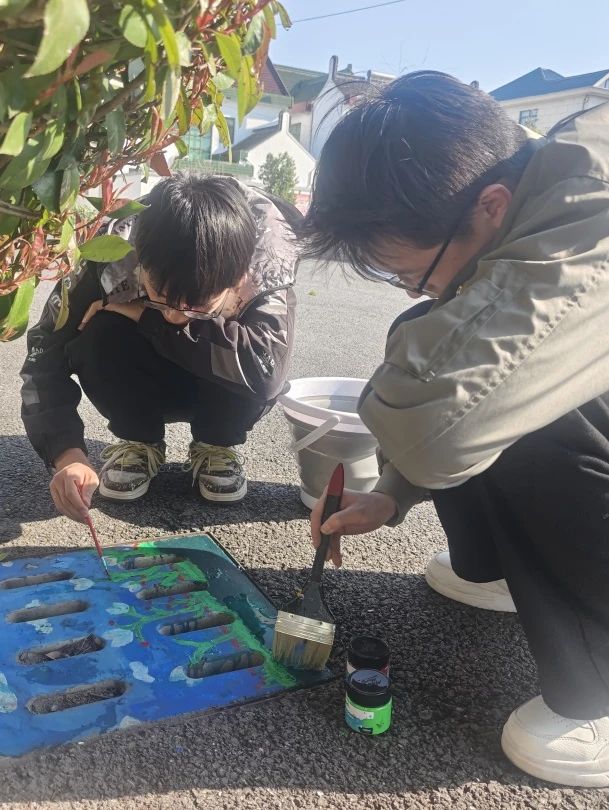 在活动现场,团员们被分为若干小组,每组负责一个井盖的绘画创作。他们先对井盖进行清洁和打磨,确保画面效果最佳。随后,大家集思广益,设计出各具特色的图案:有的描绘乡村田园风光,有的融入传统文化元素,还有的展现现代建筑的独特魅力。绘画过程中,团员们分工明确,有的调色,有的勾勒轮廓,有的填涂上色,配合默契,现场气氛热烈而有序。