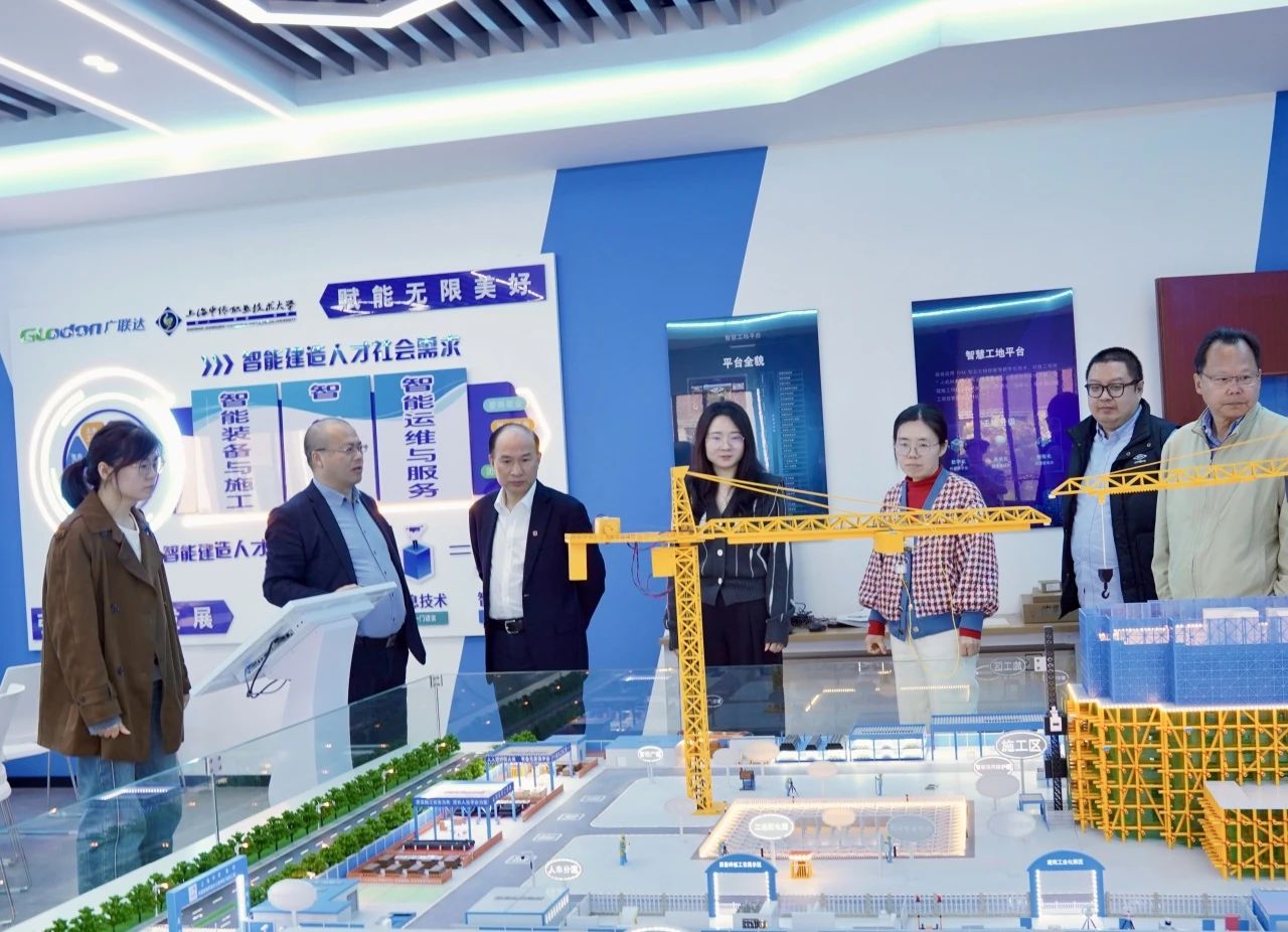 校领导一行在学院领导的陪同下,参观学院实验实训室,详细了解各实验室的设备与研究情况,并对智能建造等领域的探索予以肯定。