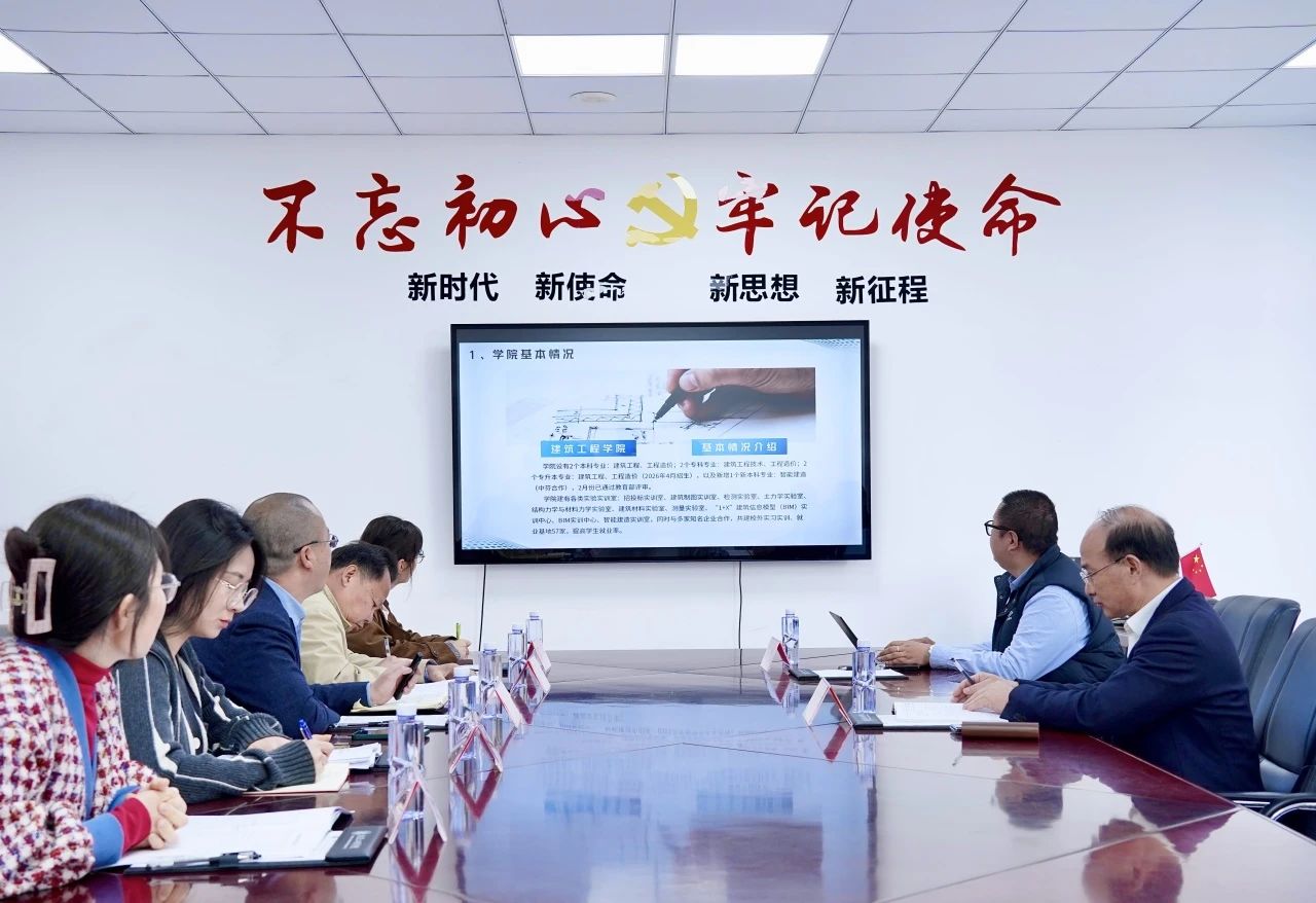 校长曹雨平听取相关汇报并给出三个建议,一是利用好行业数字化智能化转型的机遇,以工程检测为重点方向,开发人形机器人应用于建筑领域,通过人机协同体现专业核心能力;二是要深化校企合作,共同开展科学技术研发,实现技术成果转化;三是持续关注学院党建工作,发挥党组织的凝聚力,助力学院专业教学高水平发展。