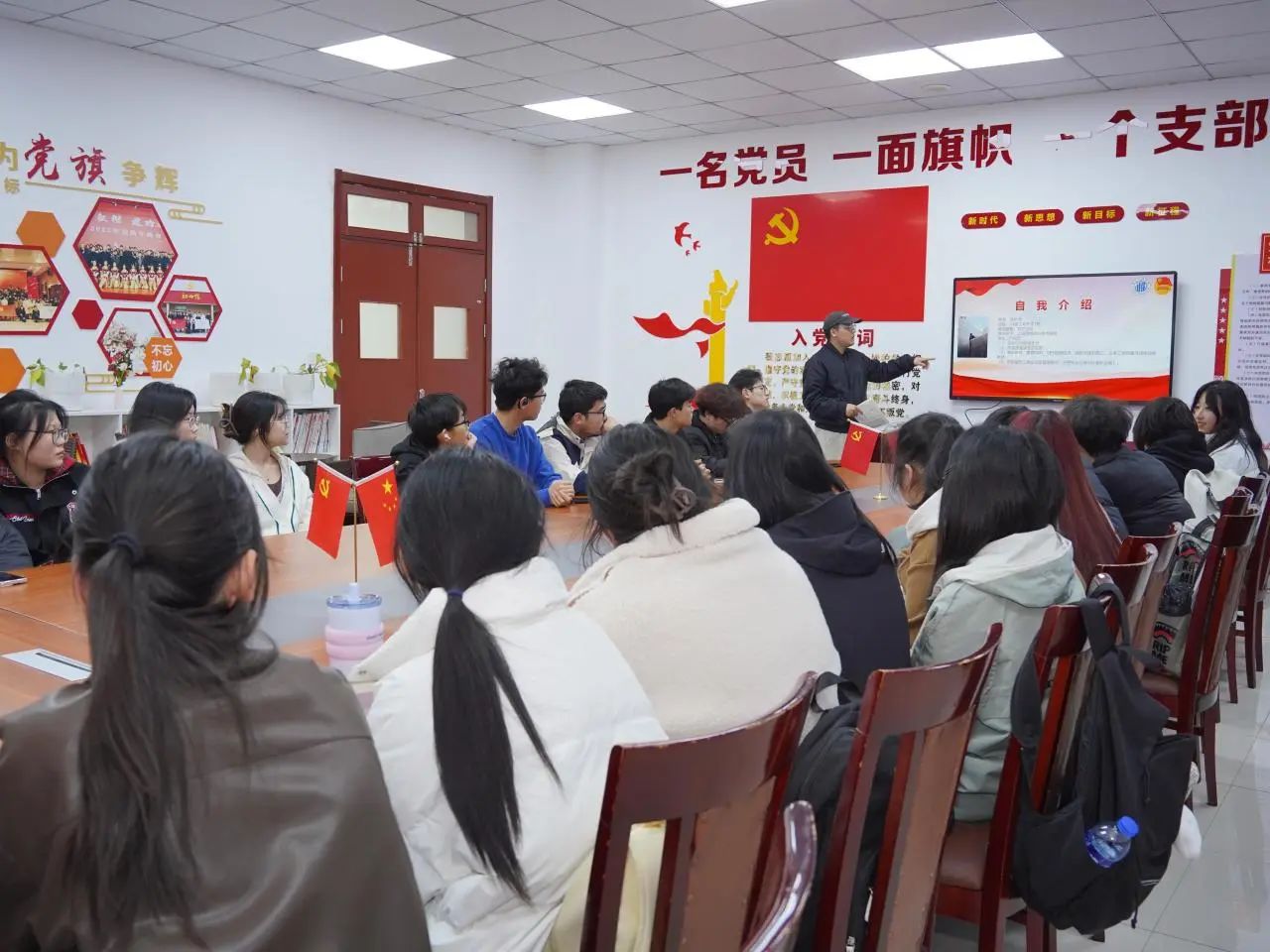 为加深同学们对党史、新中国史、改革开放史、社会主义发展史的理解,2025年4月2日,在8号楼105开展宣讲活动,建筑工程学院与外国语学院的同学共同到场聆听。本次活动的宣讲人是来自24建工专升本1班的学生党员蒋舻浩。