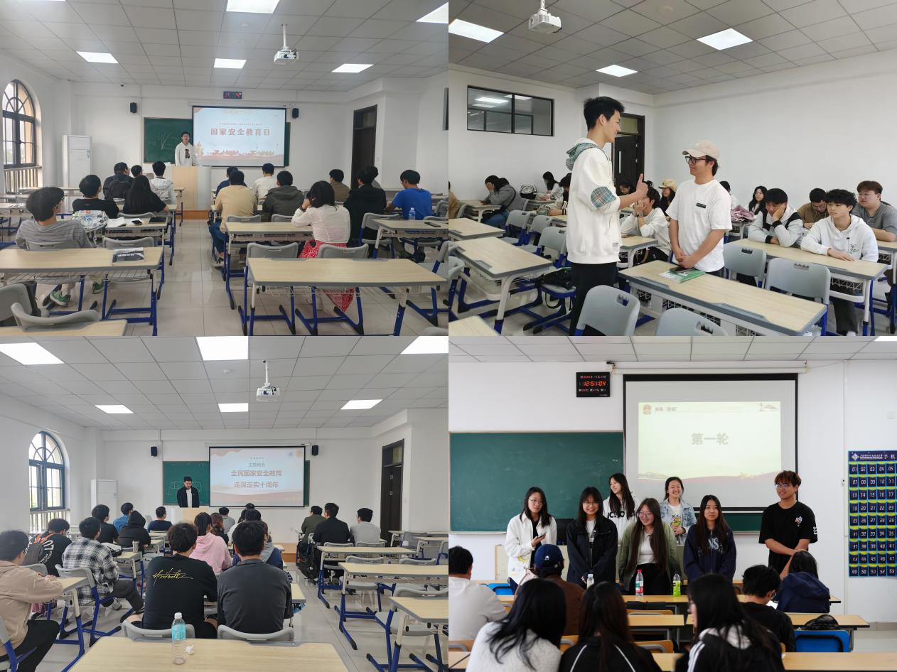 同时,学院内开展“国家安全知识竞赛”,吸引450余名学生参与答题,同样组织党员师生,团学骨干在8号楼105开展以“千万师生同上一堂国家安全教育课”为主题的公开课。同样组织学生进行线下观看。