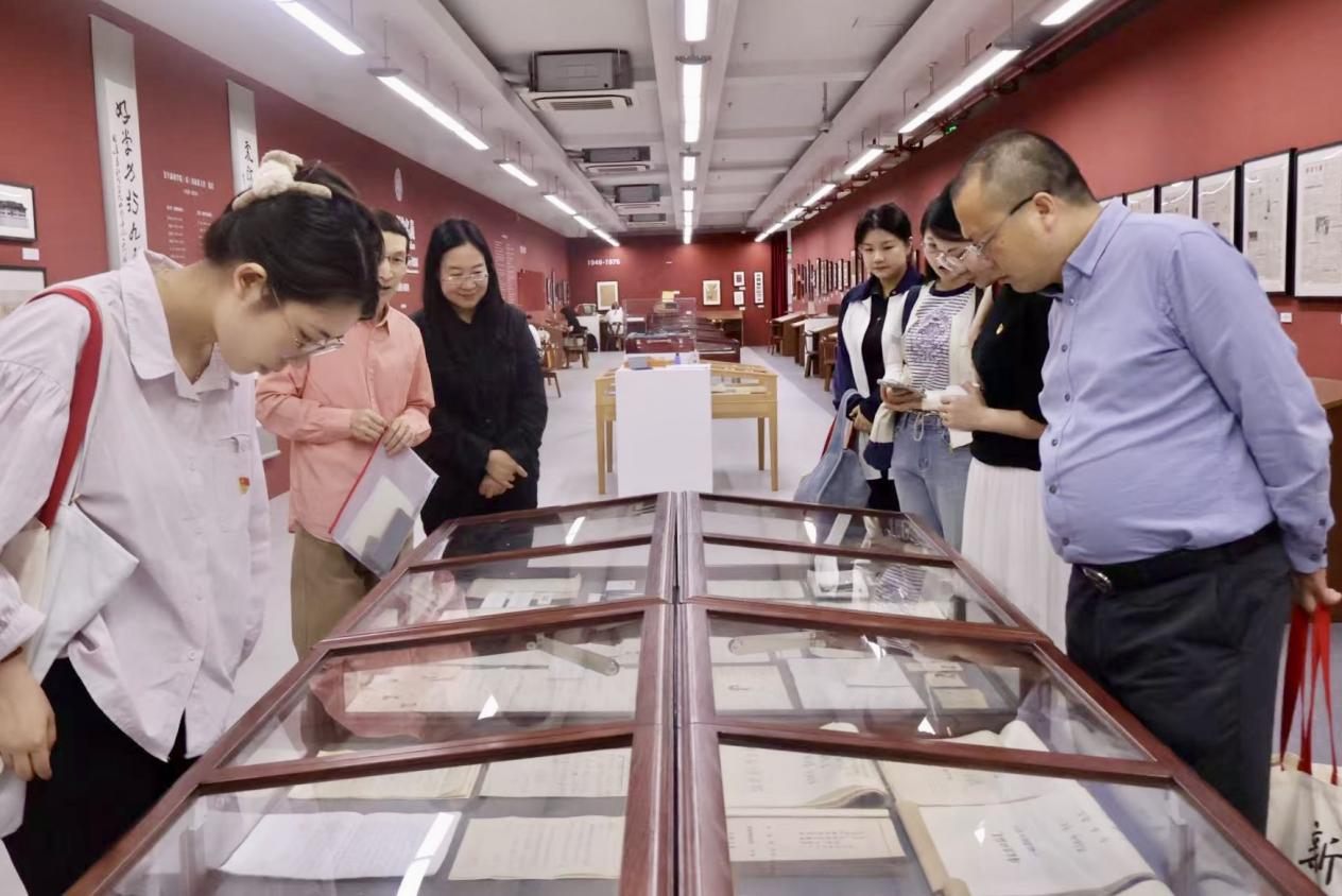 座谈会后,在复旦大学新闻学院工作人员陪同下,上海中侨职业技术大学建筑工程学院一行前往新闻学院屠海鸣图书楼三楼,参观“以新闻的名义”文献展。珍贵的历史文献、影像资料与实物展品,生动勾勒出学院九十余载的发展脉络,让参观者领略到新闻学院在新闻教育与学科建设领域的文化魅力与学术传承。