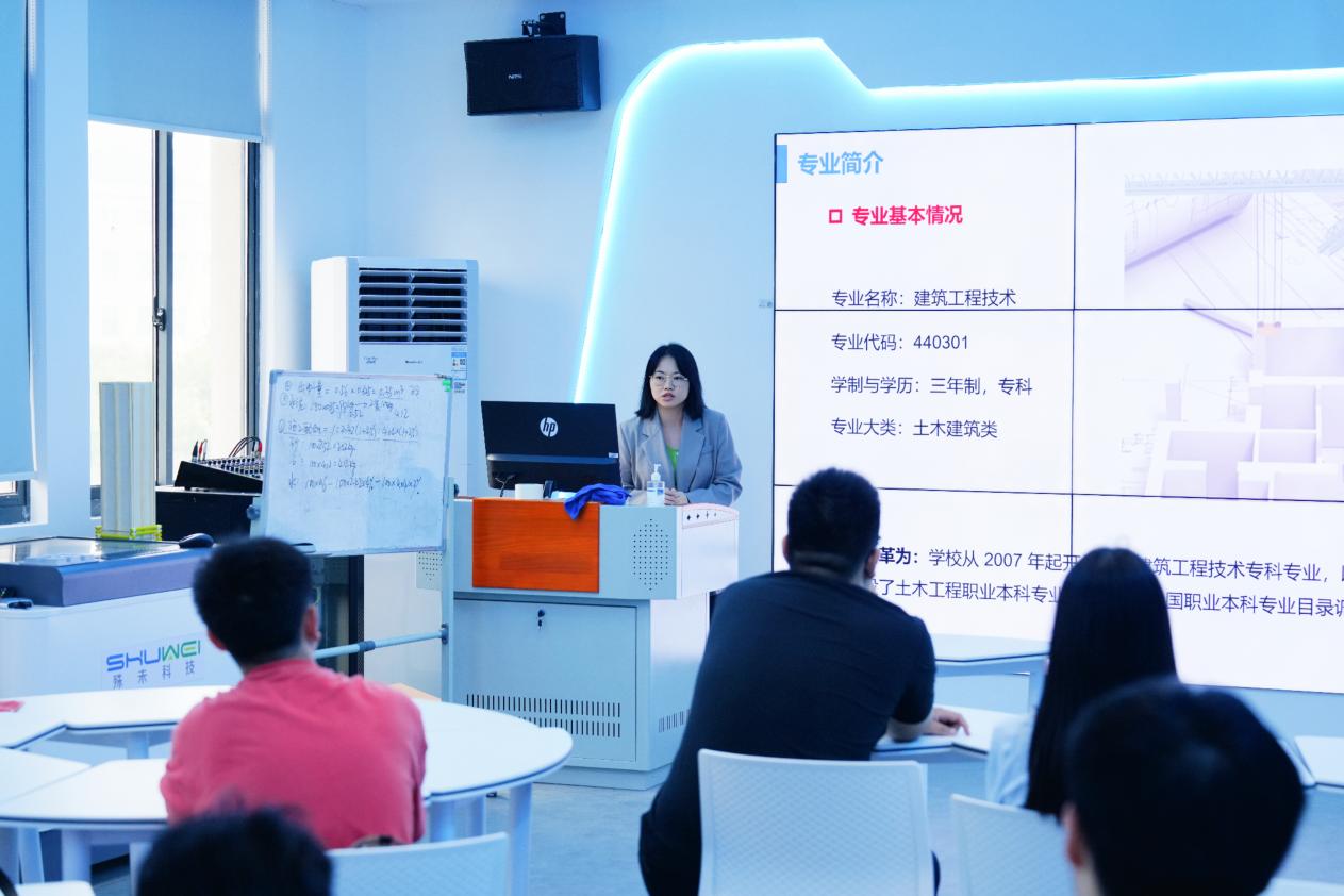 随后,建筑工程技术专业主任黄岚详细介绍建筑工程技术专业的特色与优势。她强调该专业在实际工程项目中的应用价值,特别是如何通过先进的施工技术和管理方法,提高工程质量和效率。并鼓励同学们积极参与各类比赛和实践活动,通过实际操作提升自己的专业技能和综合素质。
