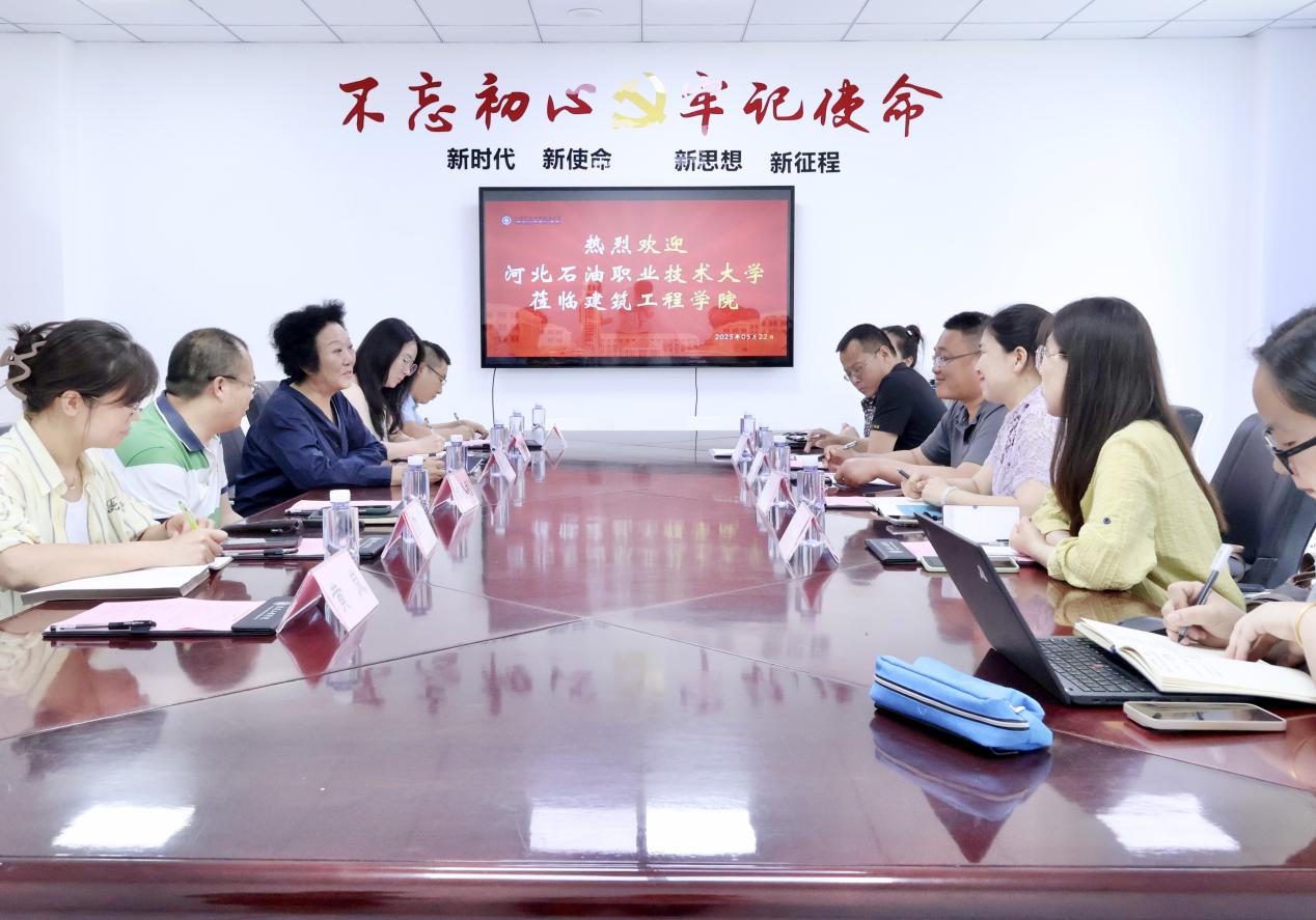 为全面贯彻落实新时代职业教育高质量发展要求,深化专业内涵建设、强化党建引领、提升教学科研水平,2025年5月22日下午,河北石油职业技术大学来访上海中侨职业技术大学建筑工程学院。河北石油职业技术大学来访人员包括建筑工程副主任胡桂秋、副书记庄向仕、城市设施智慧管理专业负责人李红欣、智能建造工程专业负责人刘岩。上海中侨职业技术大学副校长刘淑芸,建筑工程学院直属党支部书记、院长朱小利,副书记岳建梅,院长助理高萍,工程造价本科专业主任令永强等参加会议。调研会由建筑工程学院直属党支部书记、院长朱小利主持。
