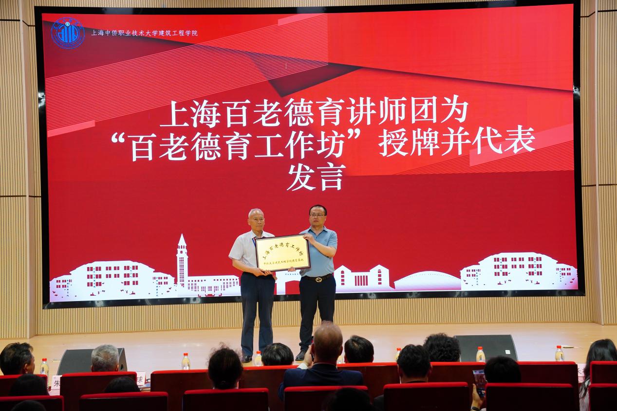 第三项议程,上海百老德育讲师团为“百老德育工作坊”授牌签约并代表发言。上海百老德育讲师团团长张妙德表示,2025年是上海百老德育讲师团与建筑工程学院合作共建的第三年,双方通过党建共建、开展系列讲座等多种方式深入合作与交流,将党性教育走深走实,为建筑工程学院思想铸魂提供有力帮助。