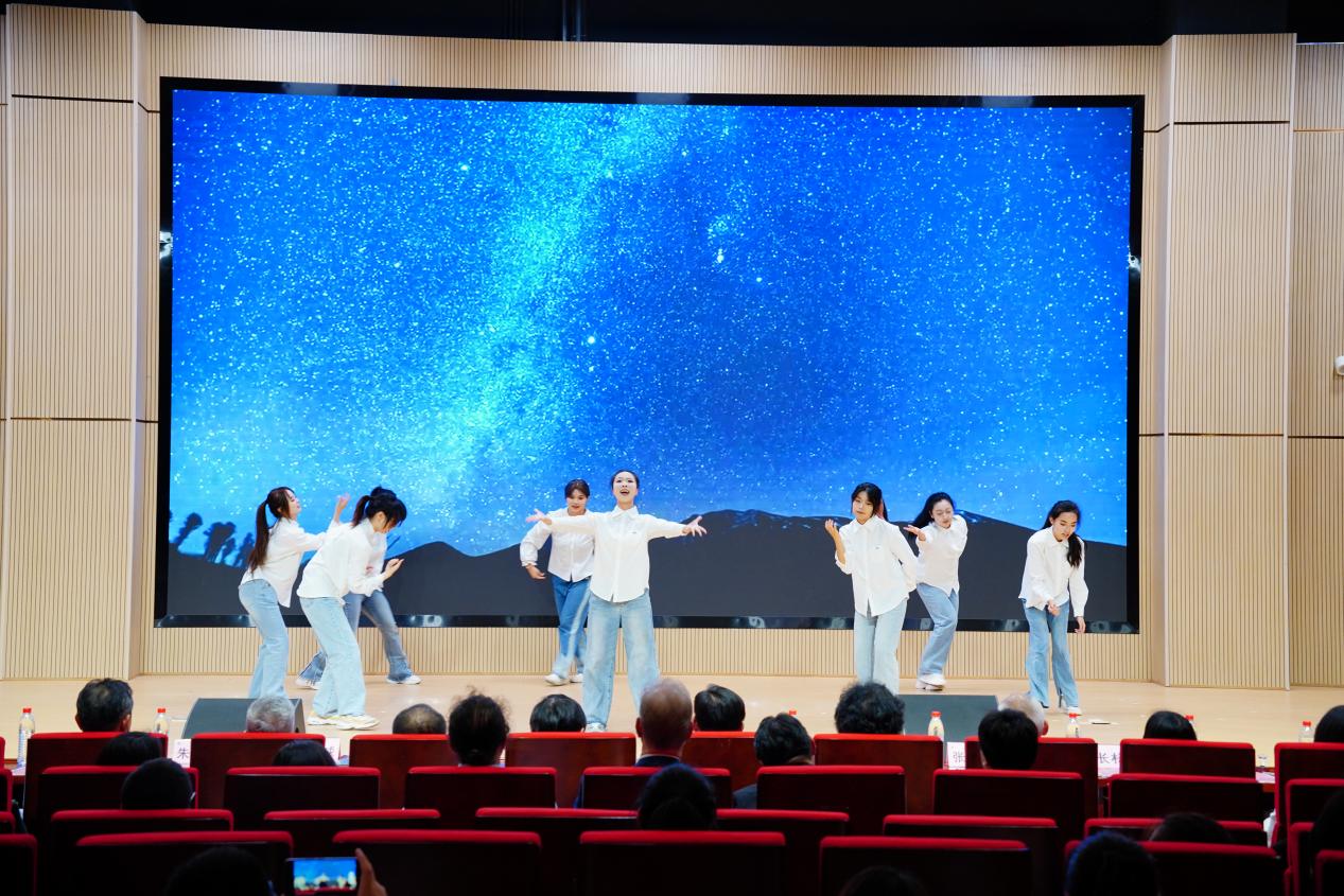 第四项议程,校团委美育实践中心团委美育中心成员表演舞蹈《星辰大海》。表演者用优美而灵动的舞姿刻画出青年人无限激情与勇于拼搏的逐梦轨迹。