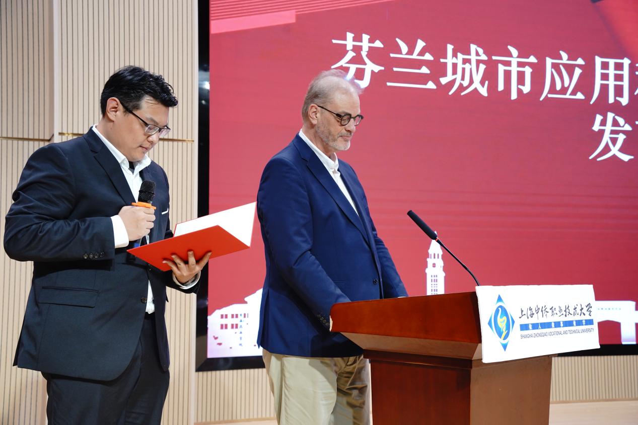 第十项议程,芬兰城市应用科学大学地产与建筑学院院长Jorma Sateri发言。双方虽相隔万里,理念相同,希望为建筑行业提供坚实人才输出。