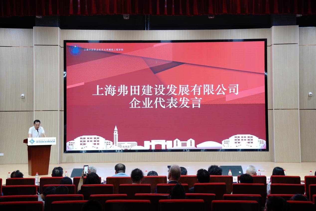 第十一项议程,上海弗田建设有限公司企业代表发言。副总经理张仕伦表示校企合作促发展,产教融合育人才,上海弗田建设发展有限公司作为建筑工程学院长期合作单位,建筑工程学院开展四届“弗田杯”系列大赛,促进学生技能成才,将校企合作走深走实,校企同心,未来可期。